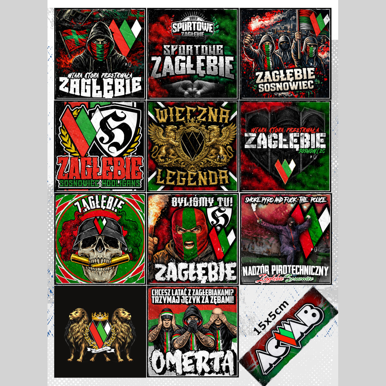 22 wlepy o rozmiarze 8×8 cm + wlepa o rozmiarze 15x5cm.